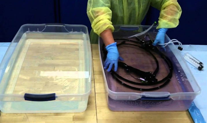 تنظيف الانزيمات: اغمر المنظار بالكامل في محلول التنظيف الإنزيمي وامسح سطح المنظار. شطف خط أنابيب المنظار مع الحفاظ على جهاز التروية الكامل. يرجى اختيار محلول تنظيف الإنزيم كما هو موضح في دليل المنظار. الاستخدام المتكرر لمحلول التنظيف الإنزيمي له تأثير أكبر على تأثير التنظيف.