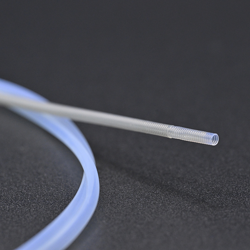 • تتميز الطبقة الداخلية من مادة PTFE بمعامل احتكاك منخفض جدًا، مما يقلل من مقاومة إدخال الأداة وتآكل المنظار. توفر الطبقة الخارجية من مادة ePTFE امتثالًا جيدًا للانحناء ومرونة جيدة.